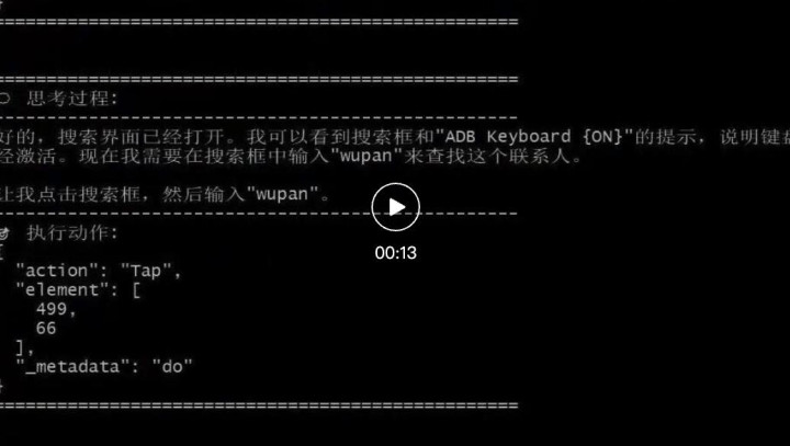 可以看到,系统启动后,Open-AutoGLM 首先进行了一波「自检」,确认 API 和系统权限无误。在这里,我们可以看到智谱给 Phone Agent 的描述:「AI-powered phone automation」,即「AI 赋能的手机自动化」。