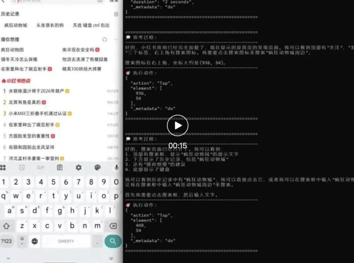 接下来试试 AutoGLM 与小红书的交互。