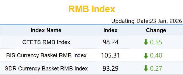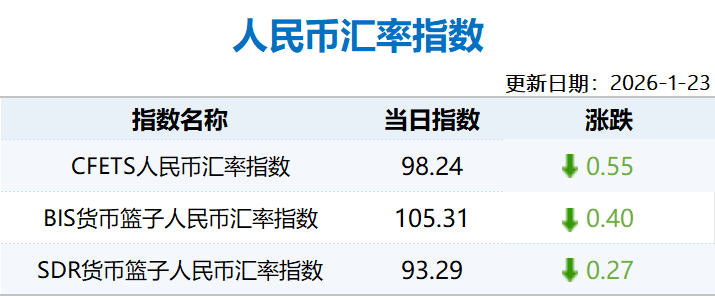 新版人民币汇率指数已于2025年1月1日起生效,详情参见《关于调整CFETS人民币汇率指数货币篮子和权重的公告》。
